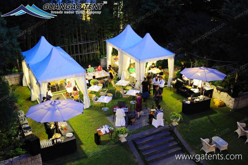 The Pagoda Tent is a new type of temporary building for outdoor activities. The peaked tent is an economical tent, and its main features are that it is light, faster to install than conventional tents, and more economical and practical. It can meet the customer's requirements for the size of the cone-top tent. In particular, the awning cloth made of imported synthetic fibers and three layers of PVC materials is selected. The tarpaulin weighs 650-850 grams per square meter, and its performance fully meets the European and American standards. The frame part is exquisitely processed and handled in accordance with safety standards.