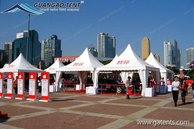 La tente de pagode est un nouveau type de construction provisoire pour des événements extérieurs. Elle contient non seulement des formes de pointe et de tente de c?ne, mais inclut également beaucoup de formes telles que le haut de chevelure, le haut d’arc, etc. La tente de pagode appartient à l’auvent économique. Les principales caractéristiques sont la lumière et l’installation plus rapide que l’auvent régulier, plus économique et pratique. Peut répondre aux exigences des clients sur la taille de la tente de c?ne. En particulier, nous sélectionnons la toile d’ombre faite de fibres synthétiques importées plus trois couches de matériaux de PVC. Le poids de bache d’épaule est 650-850g/SQM, la performance peut entièrement atteindre les normes européennes et américaines, le traitement délicat de la partie du cadre et le traitement répondent aux normes de sécurité.