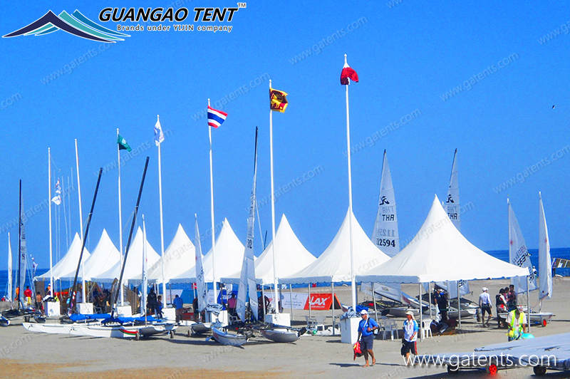 La tente de pagode est un nouveau type de construction provisoire pour des événements extérieurs. Elle contient non seulement des formes de pointe et de tente de c?ne, mais inclut également beaucoup de formes telles que le haut de chevelure, le haut d’arc, etc. La tente de pagode appartient à l’auvent économique. Les principales caractéristiques sont la lumière et l’installation plus rapide que l’auvent régulier, plus économique et pratique. Peut répondre aux exigences des clients sur la taille de la tente de c?ne. En particulier, nous sélectionnons la toile d’ombre faite de fibres synthétiques importées plus trois couches de matériaux de PVC. Le poids de bache d’épaule est 650-850g/SQM, la performance peut entièrement atteindre les normes européennes et américaines, le traitement délicat de la partie du cadre et le traitement répondent aux normes de sécurité.